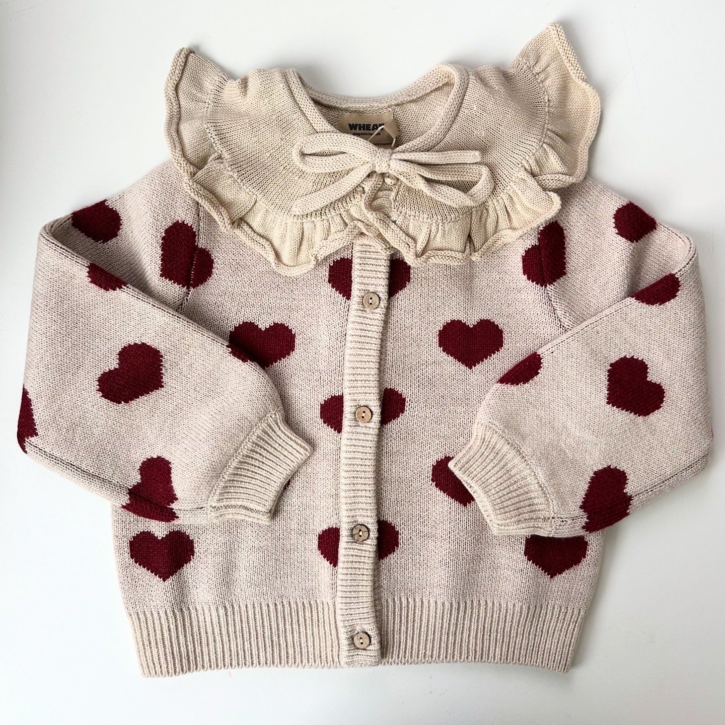 [Wheat] Jacquard Cardigan Hearts - Offwhite Melange