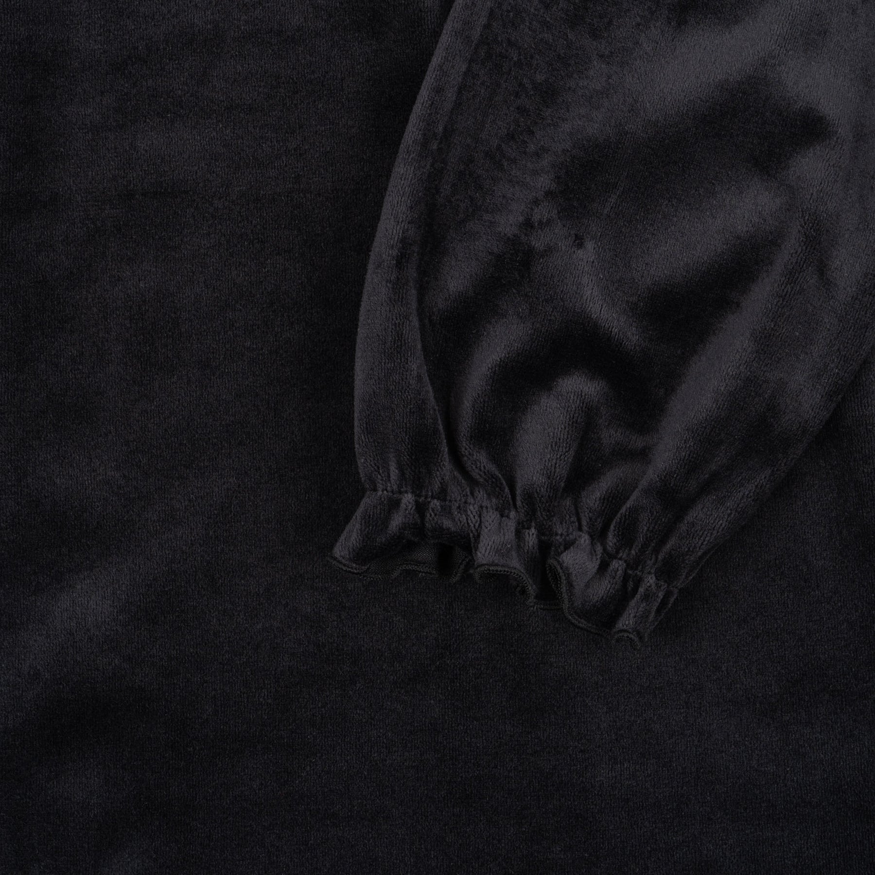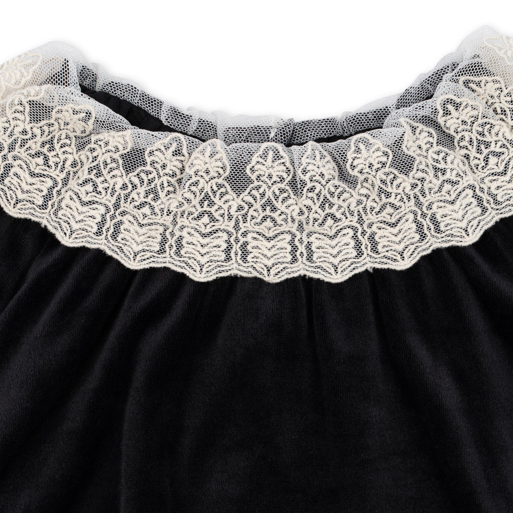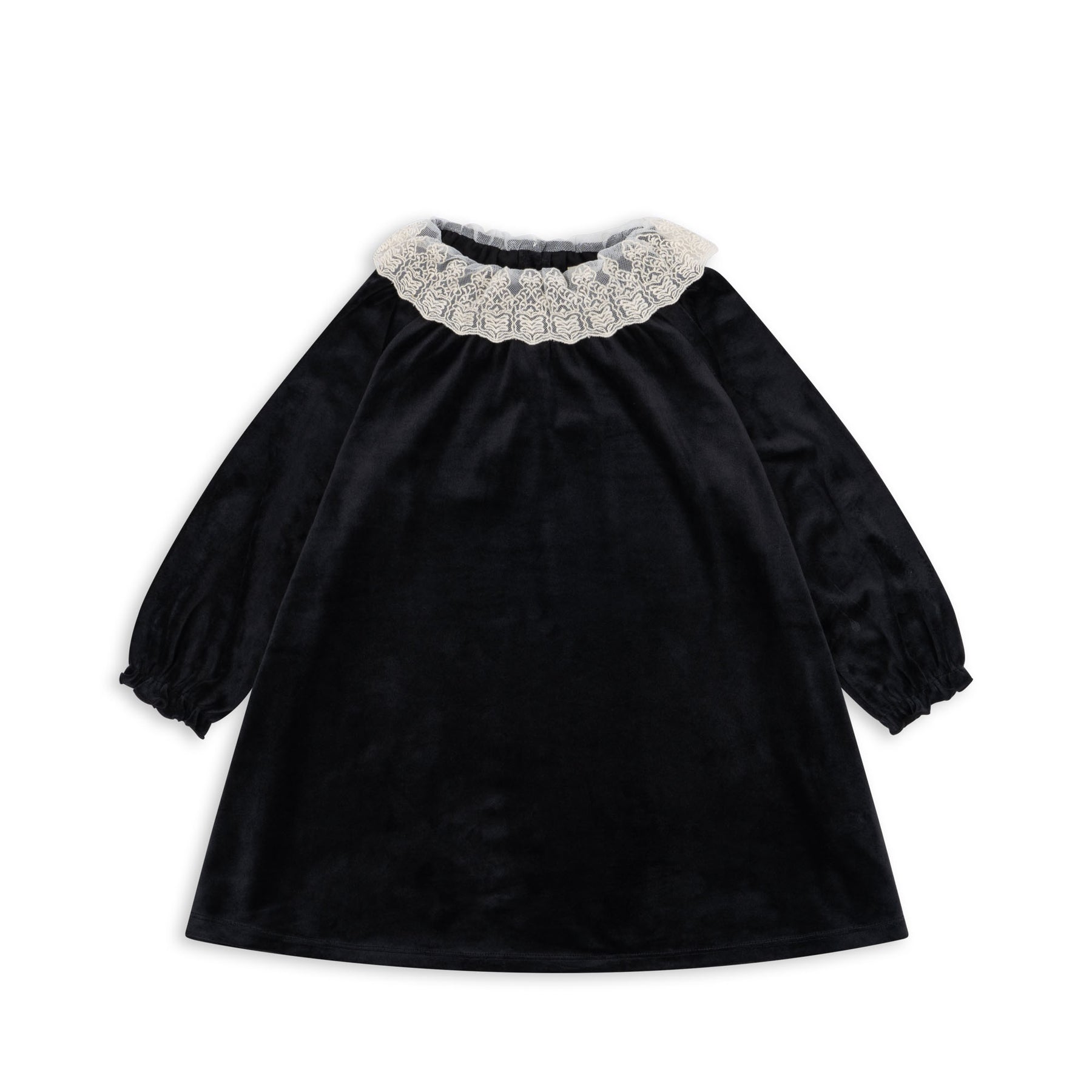 Soft velvet dress with a decorative lace collar. Loose, slightly a-shaped silhouette. This product contains 80% GRS-certified polyester, certified by CU 1094701