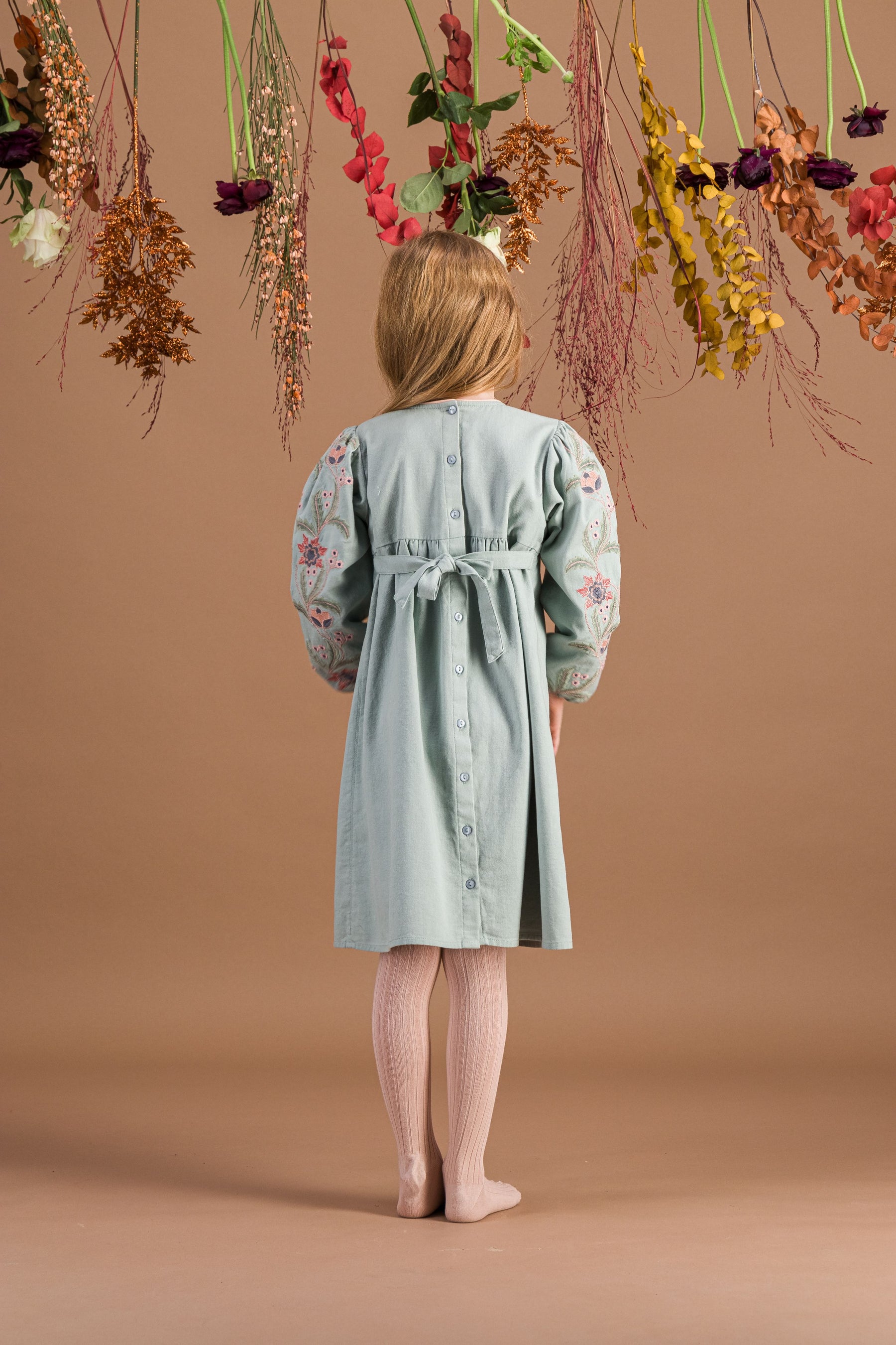 A tied belt at the back allows the dress to be adjusted to fit your child’s body shape.