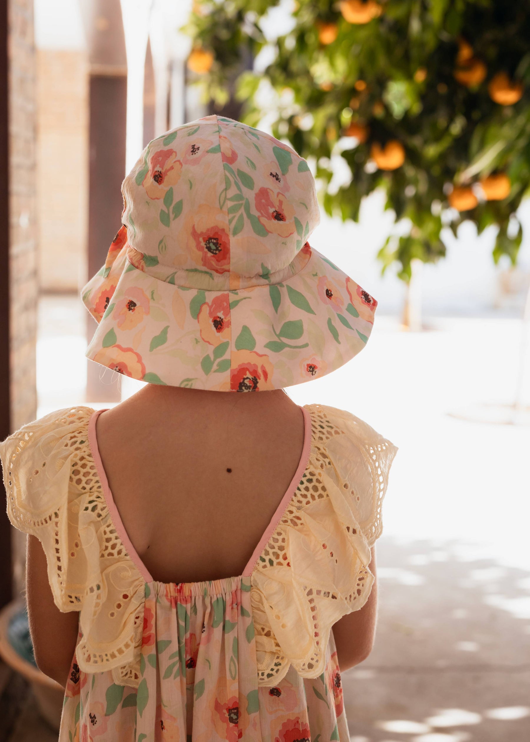 A very chic hat made from organic cotton, featuring a long brim that fully covers your child's head for optimal sun protection.