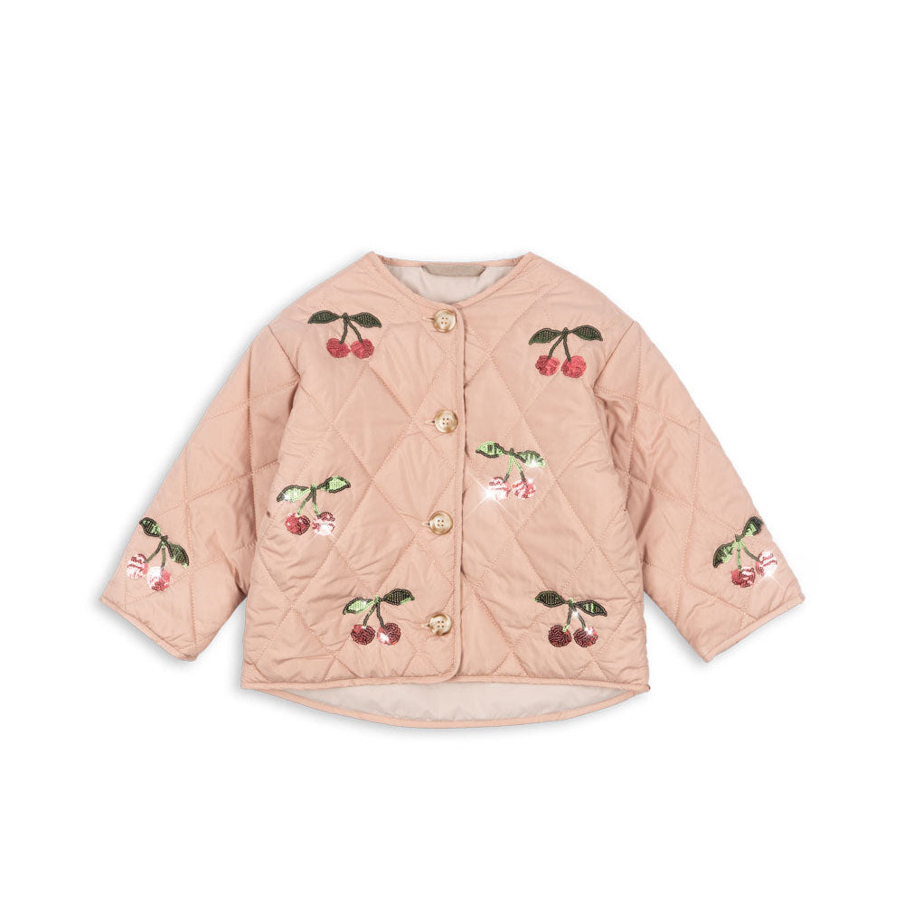 Lightly padded quilt jacket with decorative sequins. Designed in a casual silhouette that is meant to fit a bit loose, with a classic round neck and slim cuffs as the cute finishing touches.