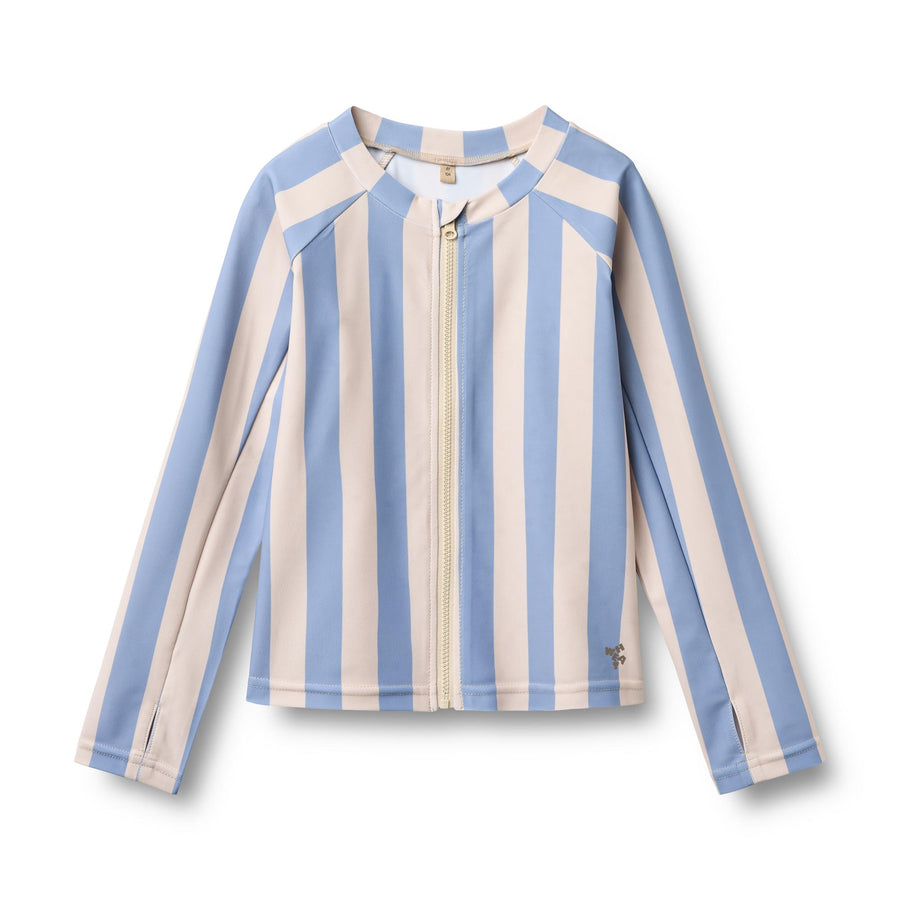 [Wheat]Swim T-shirt L/S Zip Ada - Bold Blue Stripe