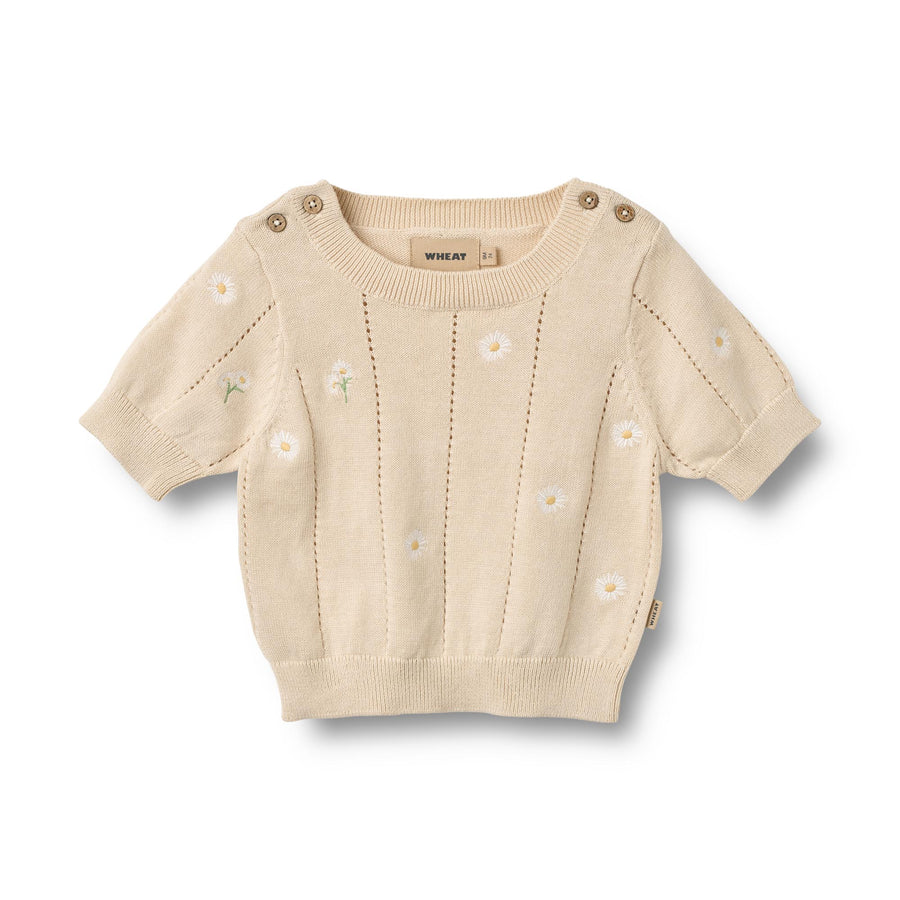 [Wheat]Knit Top S/S Malvina - Sandshell White Flowers