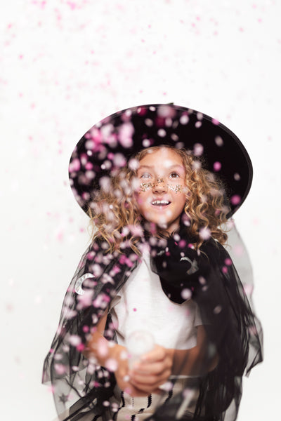 Cape in black colour with silver elements, designed for children 3 - 7 years old.