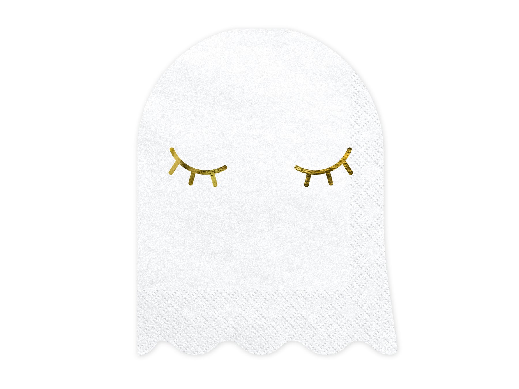 Paper napkins Ghost in white colour with gold metallic print, size after unfolding approx. 22.5 x 28 cm, size after assembling approx. 11 x 14 cm.