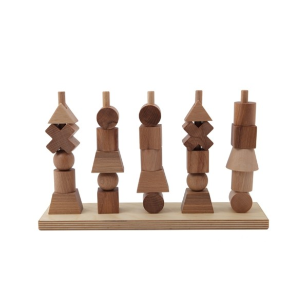 Wooden Montessori stacking toys. Can you help the characters climb the wooden fence? How do you want to arrange them? By color or by shape? Or maybe you want to mix them? You train your senses and have fun! The sense of touch - the wood is so smooth thanks to beeswax and vegetable oils. Eyesight - beautiful colors thanks to ecological dyes. Close your eyes… that’s what wood smells like. So beautiful, so safe – by nature!